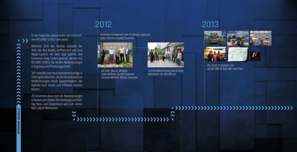 Weitere Niederlassungen wurden gegründet. Unsere Inhaber Volker Wilhelm und Rudolf Strommer feierten ihr 25-jähriges Richard Schulz-Jubiläum im Jahr 2012.