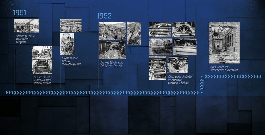 Doch unser Unternehmen schrieb weiter an seiner Erfolgsgeschichte. Die Baustellen wurden größer, die Mitarbeitenden mehr. Zeitweise über 10.000 waren zu dieser Zeit angestellt und arbeiteten von verschiedenen Zweigstellen aus …