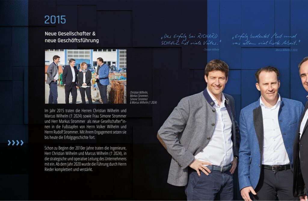 2015 wechselte die Geschäftsführung. Christian und Marcus Wilhelm († 2024) sowie Simone und Markus Strommer wurden neue Gesellschafter bzw. Gesellschafterin. 2020 ergänzte Markus Rieder das Team….