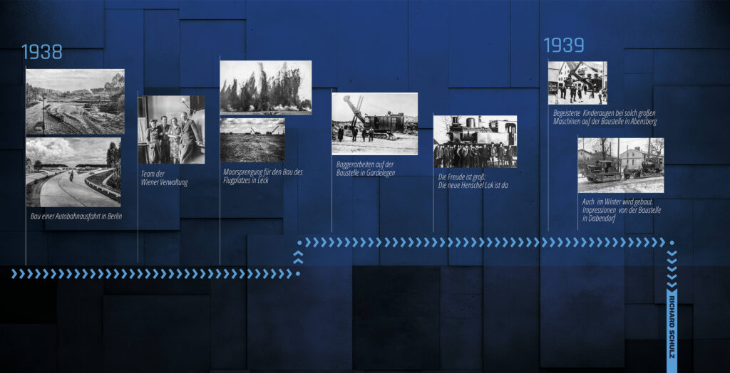 Zahlreiche Bilder von ganz unterschiedlichen Baustellen mit großer Maschinenpower sowie ein altes Schriftstück haben wir für Sie zusammengetragen ….