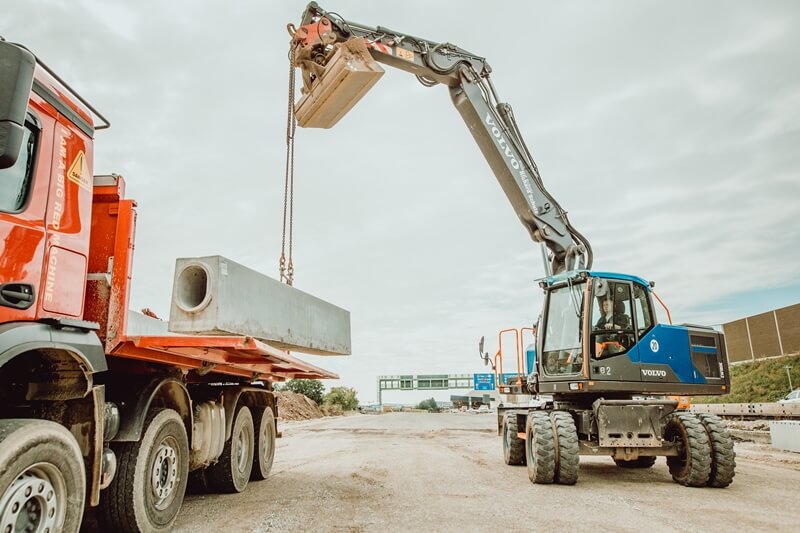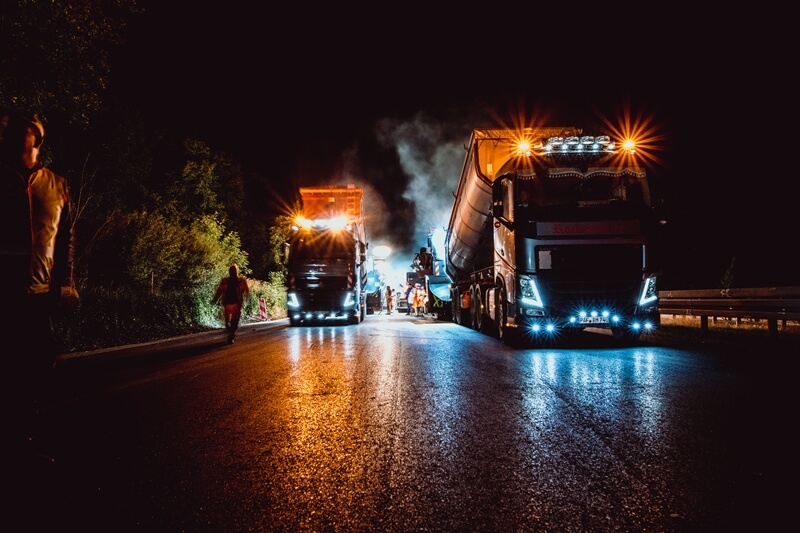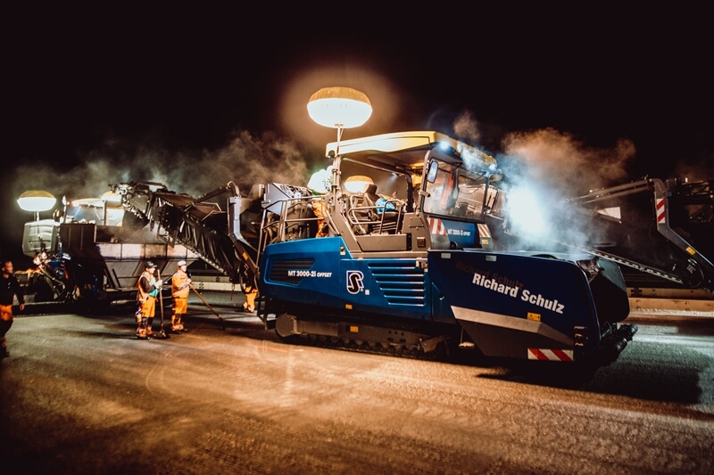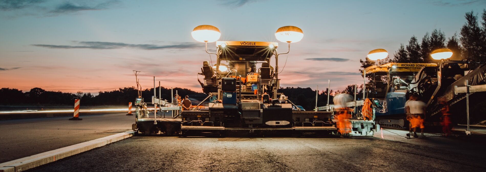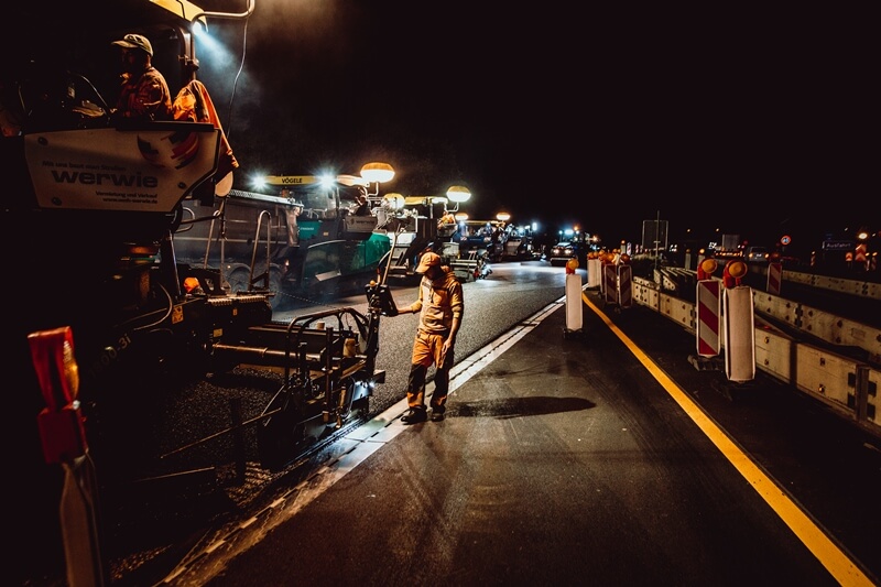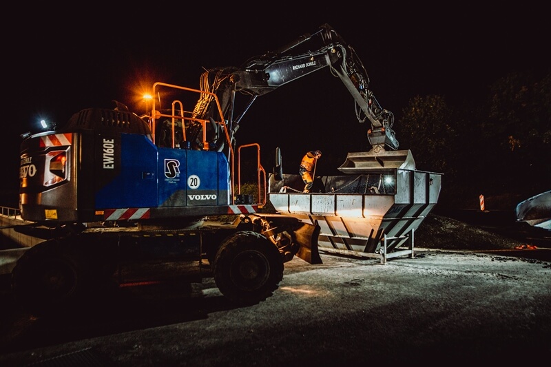 Sehen Sie hier unsere Maschinen im Einsatz – bei Tag und bei Nacht – und erfahren Sie Zahlen, Daten und Fakten zu unseren starken Begleitern auf jeder Baustelle.